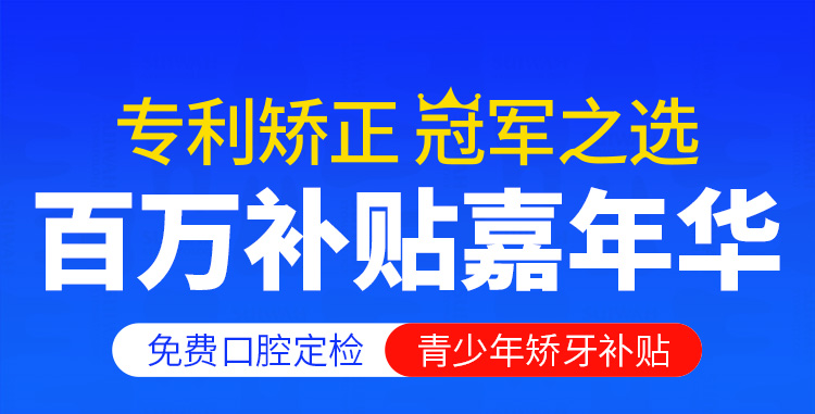 专利矫正 冠军之选 百万补贴嘉年华 免费口腔定检 青少年矫牙补贴...