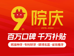 9周年院庆 百万口碑 千万补贴,精准种牙、专利矫牙、硕博名医、省钱看牙...